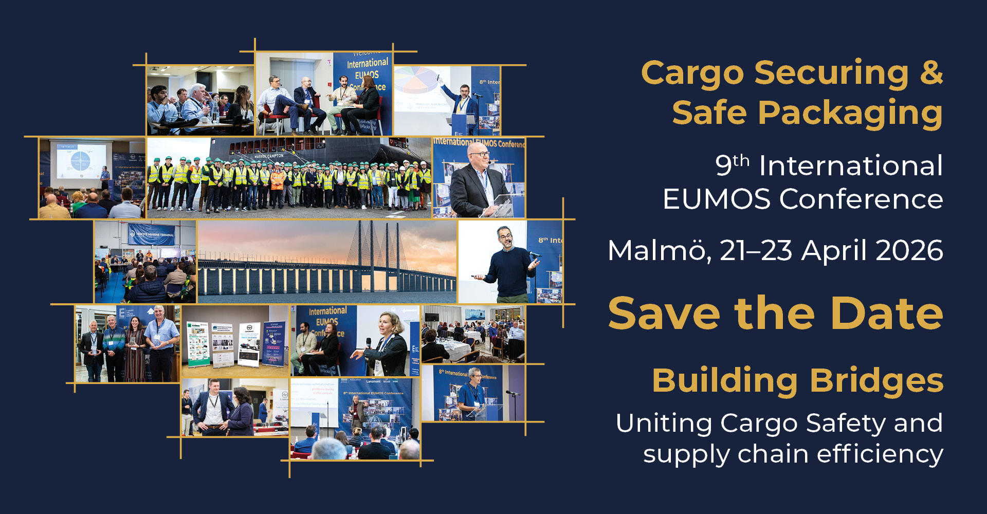 The European Safe Logistics Association – EUMOS – is a Pan-European network of like-minded companies devoted to maximising safety throughout the logistics chain. As an independent non-profit association, EUMOS relies on the exchange of best practices when working on safety standards for logistics in all transport modes. Thanks to the variety of expertise by its members, EUMOS approaches logistics safety questions from different angles to ensure all elements of safety are considered in order to be able to speak with one voice for logistics safety. EUMOS’ members are private and public bodies involved in logistics safety, load stability and cargo securing.